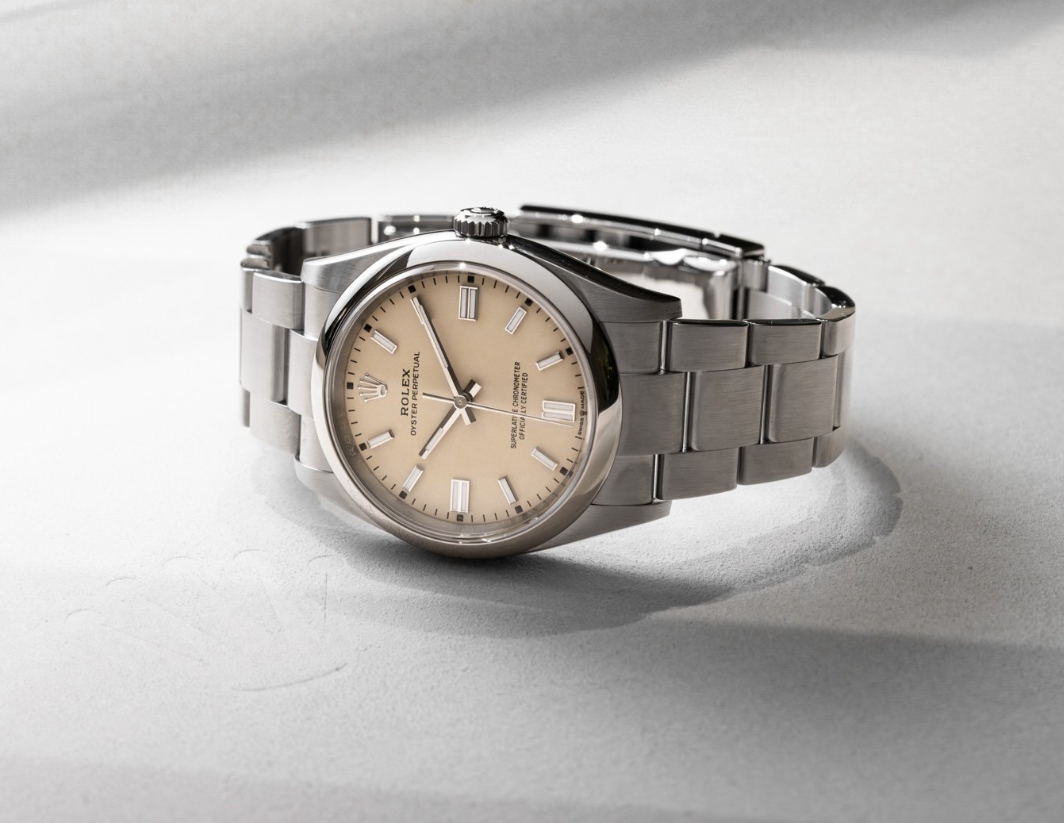 Size matters. That’s certainly the case for the Rolex Oyster Perpetual that comes in no fewer than five sizes — 28, 31, 34, 36, and 41mm. This year, The Crown introduced three soft and shimmering pastel colors — lavender, beige, and pistachio. In addition, there’s a new glossy black lacquered dial and a “med blue” dial that looks like the waters of the coast of Santorini. If choosing between these perfectly executed dial colors wasn’t enough, choosing between a Rolex Oyster Perpetual 36 and 41 can be agonizing. Don’t worry; keep breathing, and it will all be okay. Fratello to the rescue!