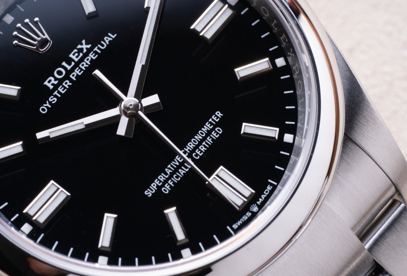 Choosing between colors can be difficult, especially with the three pastel shades that Rolex recently added to the OP collection. The lavender, beige, and pistachio dials are made from brass that received six layers of lacquer. If you prefer the purplish lavender dial, you are limited to the 36mm OP or the smaller sizes; a 41mm model in that color doesn’t exist. The other two pastels and the new blue and black dials are available in the OP36 and OP41. It’s still quite the color palette to choose from, and when making a choice, the matter of size rears its head.